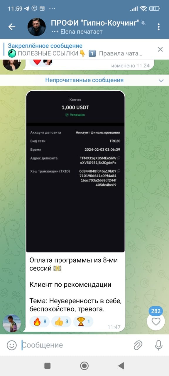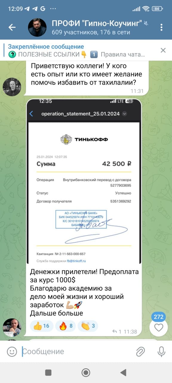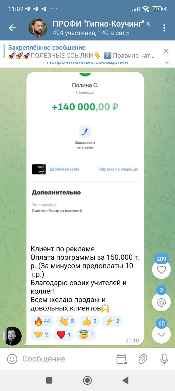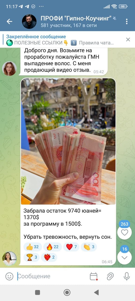 Теперь у Вас есть уникальная возможность улучшить свои навыки гипнотерапии, найти единомышленников для совместной практики и получить профессиональную поддержку от лучших специалистов в нашем чате!