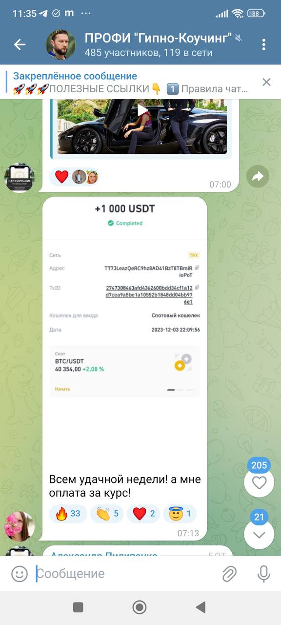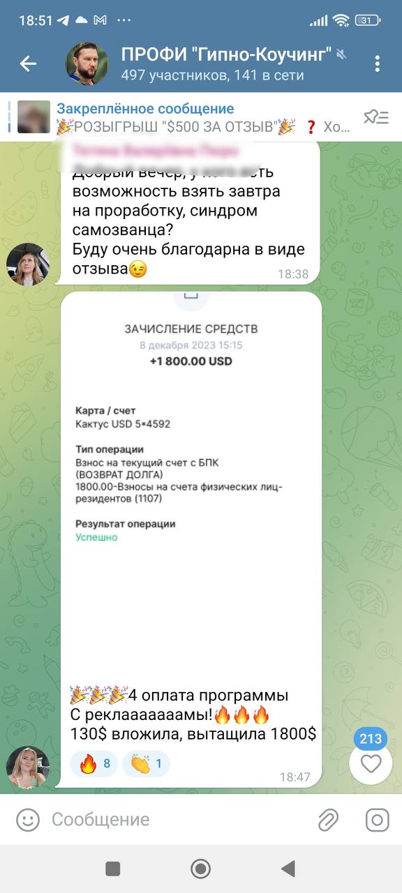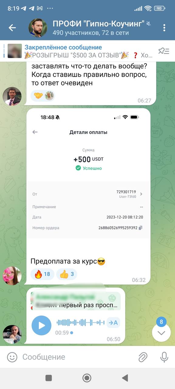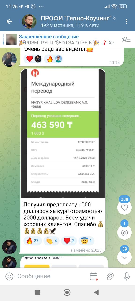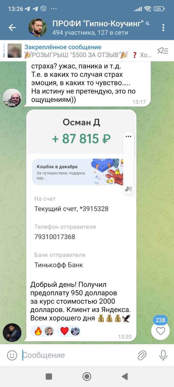 Теперь у Вас есть уникальная возможность улучшить свои навыки гипнотерапии, найти единомышленников для совместной практики и получить профессиональную поддержку от лучших специалистов в нашем чате!