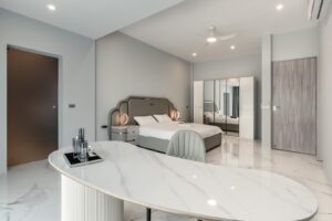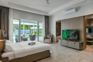 Одноуровневая вилла, выполненная в традиционной тайской архитектуре, спроектирована так, чтобы поддерживать как ритуальные практики, так и глубокий отдых. Внутреннее устройство сочетает аутентичность и комфорт: каждая спальня имеет отдельную ванную комнату, а пространство адаптировано под медитативную и церемониальную работу.