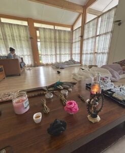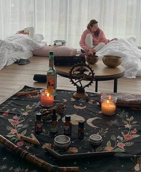 Во время ретрита: 7-дневное индивидуальное погружение. Я лично провожу все сессии и церемонии. Здесь можно безопасно упасть, поплакать, отпустить и вернуться сильнее, чище и живее.